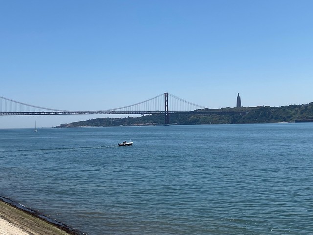 Torre de Belém (Belém Tower) → Padrão dos Descobrimentos (Monument to the Discoveries) → across the 25th of April Bridge to the Christ the King Statue.