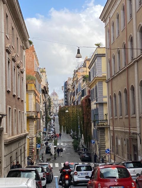As we walked along Via Agostino Depretis, we couldn’t help but glance back at the basilica’s impressive dome, which still looked majestic from afar. From the stroller, Liny quietly observed the world around her, while we moved forward at the city’s gentle rhythm, soaking in the unmistakable Roman atmosphere.