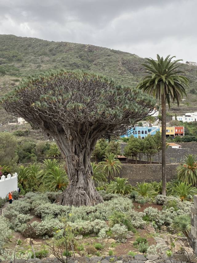 We were lucky to find parking quickly—a rare feat in Icod! From the parking lot, it was just a short walk to one of the town’s most iconic landmarks. The Drago Milenario is a stunning natural wonder that locals claim to be 1,000 years old, though scientists estimate its age to be closer to 800 years. Standing 20 meters tall with a massive canopy, this magnificent tree is nestled in a lush, green park that also offers fantastic views of the surrounding area.
